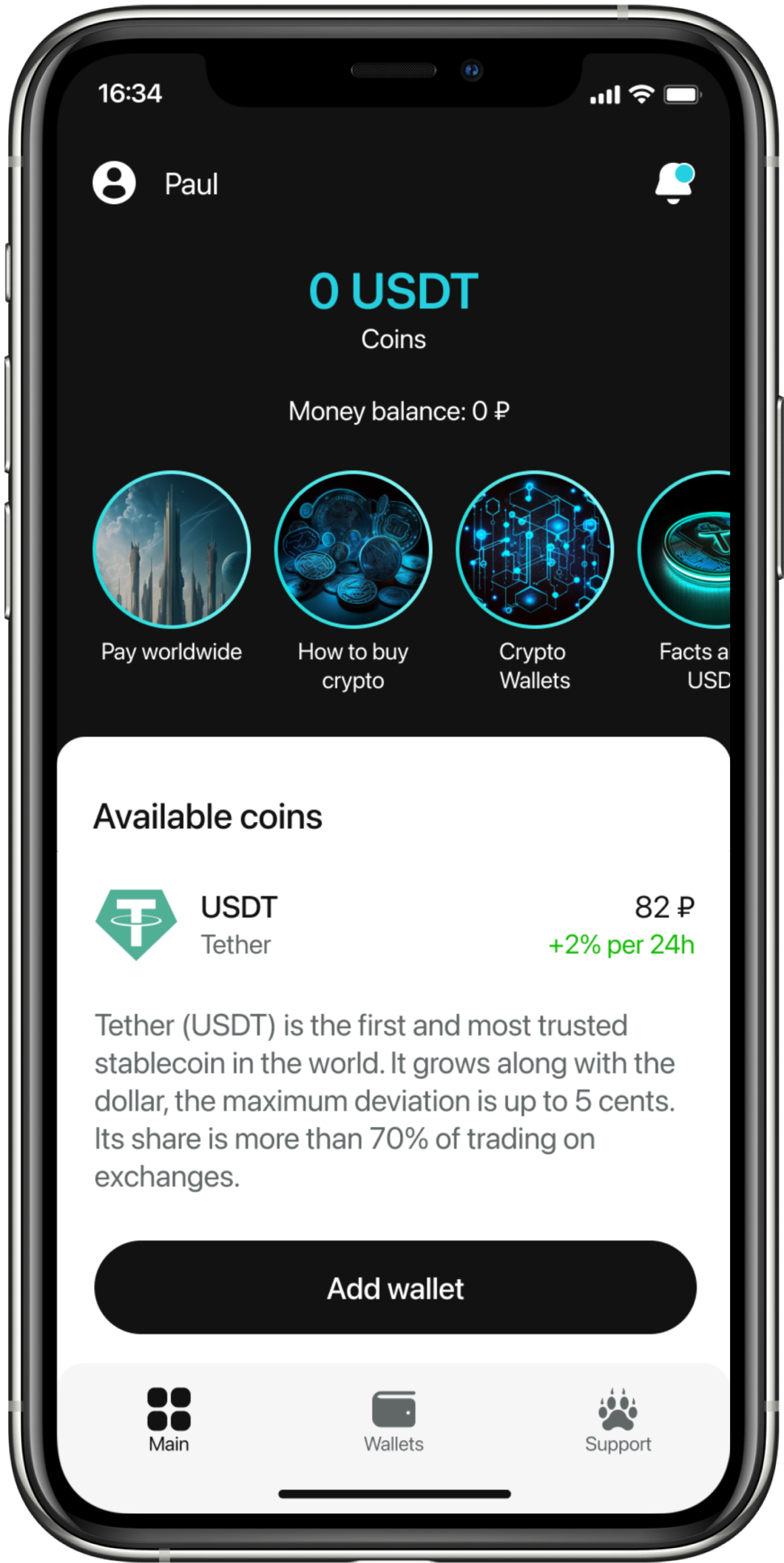 Одна из самых распространённых – Tether или USDT. Её курс равен примерно 1 доллару